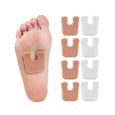 - U-shaped cutout offloads pressure from corns and calluses